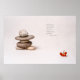 Closeup view of a pile of pebbles, stones of gray color in the form of a human being and a small bunch of dry ashberries. Textured photography. The following haiku text by Matsuo Basho is added to some copies of the image - No blossoms and no moon, and he is drinking sake all alone! (Matsuo Basho). Funny zen like photography to be used as a positive gift or decoration.