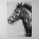 peinture à l'encre et au stylo de Carol Lake Studios d'un cheval excité à peine controlé par la brique