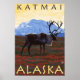 Scène Caribou - Katmai, Alaska - Poster Vintage voyage a été créé en 2007. Cette image représente des scènes de Katmai, AK.