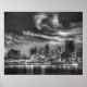 Image noire et blanche spectaculaire de la ligne d'horizon de seattle la nuit montrant des nuages profonds, des lumières scintillantes et des reflets d'eau scintillants. Du point de vue du port. Localisation Seattle, Washington. Copyright © Kate McKenna. Tous droits réservés. Illégal à utiliser ou dupliquer sans autorisation.