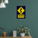 Avertissement - Twisted Logic - affiche bleu foncé avec une courbe jaune et noir style de panneau d'avertissement.