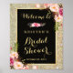 Fête des mariées Affiche de bienvenue Gold Parties scintillant Étincelle Florale Poster. (1) Pour plus de personnalisation, cliquez sur le lien "customiser plus loin" et utilisez notre outil de conception pour modifier ce modèle. (2) Si vous avez besoin d'aide ou d'articles correspondants, veuillez me contacter.