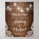 Ajoutez une touche rustique à votre mariage avec notre panneau de Mariage de dentelle en bois rustique. Ce panneau unique est parfait pour les cérémonies et réceptions en extérieur ou en intérieur et dispose d'un arrière - plan à l'allure boisée, de lampes à cordes en pot Mason et de détails de dentelle. L'affiche peut être affichée de diverses façons, par exemple dans un cadre sur un chevalet, ou montée sur un panneau de mousse ou un panneau de bois pour être exposée sur un chevalet ou accroché à un mur. Il est également disponible en téléchargement numérique, vous permettant de l'imprimer à votre convenance.