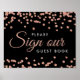 "Signer notre livre d'hôtes Mariage" Mariage Réception Signer avec Rose Gold Faux Parties scintillant Confetti Design noir
