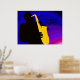 Affiches Silhouette d'un joueur de jazz, bleu & violet