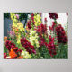 Des snapdragons gras et colorés (Antirrhinum majus 'Rocket Mix') se démarquent vraiment. Les couleurs sont le bronze, le citron, l'orchidée, le rose, le rouge, le rose, le blanc et le jaune. Remarquez le lis de tigre orange dans le coin inférieur gauche.