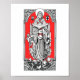 Bien que mieux connu aujourd'hui comme le saint invoqué pour trouver des articles perdus, Saint Antoine a vécu une vie beaucoup plus remarquable que son patronage pourrait conduire à supposer. Après l'ordination au sacerdoce, il a été déplacé pour rejoindre les frères franciscains récemment fondés, et sa vie subséquente comme ermite et prédicateur l'a vu survivre naufrage, maladie corporelle, et une foule d'autres défis physiques et spirituels. Il est montré ici tenant l'Enfant-Christ, en commémoration d'une vision miraculeuse qu'il avait autrefois, et un marteau, représentant son titre comme "Marteau d'Hérétique". À ses pieds se trouvent les poissons qu'il prêcha à Rimini, en raison du fait que personne d'autre n'était prêt à écouter, tandis qu'autour de lui sont les feuilles de noix de l'arbre sous lequel il vivait autrefois dans un ermitage simple. Saint-Antoine est le saint patron des Amérindiens; animaux; barrenness; Brésil; personnes âgées; foi dans le Saint-Sacrement; pêcheurs; Custodie franciscaine de Terre Sainte; récoltes; chevaux; courrier; marins; opprimés; pauvres; Portugal; femmes enceintes; demandeurs d'articles perdus; naufrages; faim; stérile; Swineherds; Tigua Indiens; voyages Voyageurs et casiniers. Art original de Matthew Alderman, matthewalderman.com.