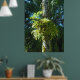 La fougère de staghorne poussant sur le tronc d'un palmier avec une schefflera poussant à partir de la fougère de cerf à Tantalus, Oahu, Hawaii.