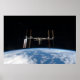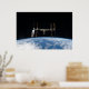 Arrière l'horizon terrestre et la noirceur de l'espace, la Station Spatiale Internationale est vue depuis Space Shuttle Discovery au moment où les deux engins spatiaux commencent leur relative séparation. Plus tôt, l'équipage des STS-128 et de l'Expédition 20 a terminé neuf jours de travail coopératif à bord de la navette et de la gare. Le débarquement des deux engins spatiaux a eu lieu à 14 h 26. (CDT) le 8 septembre 2009.