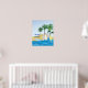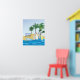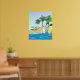 Surfboards sur une plage tropicale avec des affiches de palmiers, représentant un paysage tropical. Palmiers et planches de surf sont installés sur le sable et les vagues bleues. Il s'agit d'un modèle et vous pouvez ajouter votre texte ou le customiser pour modifier l'image, le texte, la police, la couleur. Jeu de couleurs : Bleu, vert, blanc, jaune, bronzé
