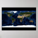 Taille recommandée pour un cadre standard : 78x52 pouces (taille originale : 72x48 pouces à 300 PPI, 311 MP). Beaucoup d'autres tailles disponibles. Cliquez sur "Customisez-le !" à droite. Cette image spectaculaire de "marbre bleu" est l'image la plus détaillée de couleur vraie de toute la Terre à ce jour. À l'aide d'une collection d'observations satellitaires, des scientifiques et des visualisateurs ont assemblé des mois d'observations de la surface terrestre, des océans, de la glace de mer et des nuages dans une mosaïque transparente et de couleur vraie de chaque kilomètre carré de notre planète. Une grande partie de l’information contenue dans cette image provient d’un seul appareil de télédétection, le spectromètre d’imagerie à résolution modérée de la NASA, ou MODIS. À plus de 700 km au-dessus de la Terre à bord du satellite Terra, MODIS fournit un outil intégré pour observer une variété de caractéristiques terrestres, océaniques et atmosphériques de la Terre. Les parties terrestres et côtières océaniques de ces images sont basées sur des observations de surface recueillies de juin à septembre 2001 et combinées, ou composées, tous les huit jours pour compenser les nuages qui pourraient bloquer la vue du capteur sur la surface d’un jour à l’autre. Deux types différents de données océaniques ont été utilisés dans ces images : les données sur la couleur vraie de l'eau peu profonde et les données mondiales sur la couleur de l'océan (ou chlorophylle). L’ombrage topographique est basé sur l’ensemble de données d’élévation GTOPO 30 compilé par le EROS Data Center de la Geological Survey des États-Unis. Les observations MODIS de la glace de mer polaire ont été combinées avec les observations de l’Antarctique faites par le capteur AVHRR de la National Oceanic and Atmospheric Administration, le radiomètre à très haute résolution avancé. L'image de nuage est un composite de deux jours d'images recueillies dans des longueurs d'onde de lumière visible et d'un troisième jour d'images thermiques infra-rouges au-dessus des pôles. Les lumières des villes mondiales, dérivées de 9 mois d'observations du Programme de satellites météorologiques de la défense, sont superposées sur une carte de surface sombre. Crédits : NASA : The Visible Earth NASA Goddard Space Flight Center Image de Reto Stöckli (surface terrestre, eau peu profonde, nuages). Améliorations de Robert Simmon (couleur de l'océan, composition, globes 3D, animation). Support technique et de données : Groupe terrestre MODIS; Équipe d'appui aux données scientifiques MODIS; Groupe atmosphérique MODIS; Groupe océanique MODIS Données supplémentaires : Centre de données EROS USGS (topographie); Centre de terrain Flagstaff de télédétection terrestre USGS (Antarctique); Programme de satellites météorologiques de défense (lumières des villes).
