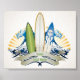 Décorez vos murs avec cette impression unique de planche de surf. Avec votre texte sur les deux bannières avant qui enveloppent trois planches de surf de style différent.