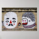 Un cool avec un visage blanc et un nez rouge semble être amoureux d'une sorte de fille poilue