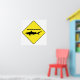 Impression d'une affiche jaune portant l'icône 'avertissement requin'.