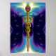 Affiches Symbole médical CADUCÉE OR Vagues Bleu Violet