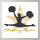 Une silhouette d'une pom-pom girl femelle avec des poms de pom sur une étoile arrière - plan en or avec le texte "Cheering Rocks" sur les T-shirts, sweat - shirts à capuche, tasses, cartes, autocollants, gardiens, iPhone et coques ipad, magnets, et bien plus encore.