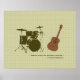 Comment décorer une chambre pour un musicien. Image d'un tambour et d'une guitare acoustique avec un arrière - plan pois et citation : "Sans musique, la vie serait une erreur" de Nietzsche