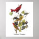 Cette belle impression de John James Audubon est d'un trio de Tangers d'été perché sur une branche d'arbre avec de petits fruits sombres. Les mâles sont un rouge vif blanc, les femelles comme d'habitude ont beaucoup plus de couleur.