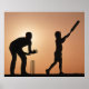 Voir la silhouette du père et du fils jouant au cricket