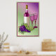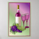 Bouteille de vin bijoux avec deux élégantes verres à vin. Les grappes de raisins vert et violet sont joliment affichées au premier plan.