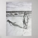 Affiches Toddler sur la plage crayon dessin d'art Imprimer