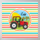 Cool, tracteur agricole rouge mignon avec champ vert sur coloré rouge, orange, jaune, vert, bleu, blanc motif à bandes arc-en-ciel. Personnalisez ce produit à thème pour les petits agriculteurs avec nom.