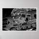 Train à vapeur, stylo et dessin à encre, 1984. Extrait de l'oeuvre originale de Barry Cooke. Un de mes dessins classiques à l'encre et au stylo, plein de mouvement dynamique.