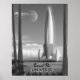 Voyagez dans l'Univers vintage espace art affiche de voyage d'une fusée spatiale argent classique des années 1950 prête pour un voyage vers la lune éloignée.