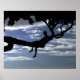 Il s'agit d'une silhouette de jeune garçon allongé dans un arbre suspendu au-dessus de l'eau (mais l'eau n'est pas visible). L'image reflète une combinaison de paix et de tranquillité, combinée à une réflexion profonde et à la contemplation. Derrière le sujet, on voit les nuages.