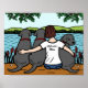 Sweet Three Black Labradors et Mom Design. De magnifiques Black Labs et sa maman se reposent au bord du lac. Qu'est-ce qu'ils bavardent ? ? ? Vous pouvez customiser du texte comme vous le souhaitez. De beaux cadeaux pour la Fête des Mères du Labrador Noir! Créé par Naomi Ochiai. Cadeaux de Labrador pour la maison de l'amant du Lab.