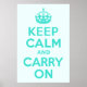 Turquoise et Azure "Keep Calm and Carry On" version moderne de l'affiche classique.