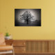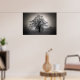 Photo en noir et blanc d'un arbre entouré d'un épais brouillard.