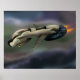 Un vaisseau spatial ou un engin spatial volant à travers une planète alien.