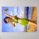 affiche de voyage vintage au Royaume-Uni d'une femme en bikini vert tenant un poisson étoile sur la plage