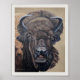 Linda Baysinger Peck peinture acrylique d'un bison, ou vache bison, manger, avec un arrière - plan bronzé et hors frontière blanche.Image © Linda Baysinger Peck Tous droits réservés