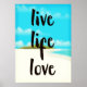 Live Life Love une citation positive inspirationnelle sur une plage tropicale des Caraïbes de sable chaud.