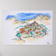 Une aquarelle en perspective d'un village au sommet d'une colline en Provence, France | Richard Lawrence / DanitaDelimont.com