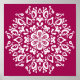 Ce mandala blanc est assis sur un arrière - plan rose foncé. La couleur est très riche et sophistiquée. Partie de la collection Pras Mandala.