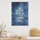 Vintage bleu, restez calme et continuez. Vieilli, sablé, sale, ce design original et vintage est fait pour vous ! Un design vintage pour une maison unique Pour changer de taille a votre goût. Ce dessin fait référence à la célèbre affiche apparue pendant la Seconde Guerre mondiale.