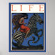 This beautiful woman certainly has a beautiful zebra steed! A zebra is to ride, apparently. The woman and vintage zebra image is by W.T. Benda, a Polish-American painter, illustrator, and designer. The vintage Zebra illustration appeared on the cover of the November 1922 issue of Life Magazine. The vintage Zebra and the art nouveau woman riding him are wonderful examples of later Art Nouveau-inspired illustration. The exotic woman is wearing vintage peacock feathers in her long flowing hair, a theme we see in other Benda illustrations. The woman wears a long red dress, and a leopard-print scarf. The cute zebra looks surprised as it backs up when it sees a little Cobra snake. The dark blue background and vivid coloring make this zebra image a stunner. This vintage zebra gift is a wonderful addition to any Zebra collection, or for someone who loves a wonderful vintage zebra in the house.