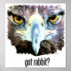 Un aigle d'or rendu coloré avec les mots a eu du lapin ? en dessous. Les yeux dorés percevants semblent regarder à travers vous comme pour dire si vous n'avez pas de lapin, vous ferez très bien.