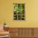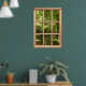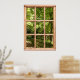Si vous aviez votre propre cabine dans les bois, vous pourriez avoir une vue comme celle-ci d'un sentier boisé verdoyant à travers les arbres. Les fenêtres en bois rustique encadrent une scène de lumière du soleil et d'ombre aux applis. Une clôture en bois longe un chemin en feuilles, avec un auvent de verdure qui crée une atmosphère reposante et apaisante. Accrochez ce poster qui ressemble à une fenêtre sur votre mur pour changer de vue ou rêver d'une maison de forêt parfaite.