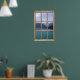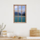 Poster qui ressemble à une fenêtre — un lac de montagne Cette photo qui ressemble à une fenêtre vous donnera votre propre vue privée sur un lac de montagne turquoise. Une scène paisible montrant les eaux calmes et au-delà des contreforts et des montagnes des Alpes. Un petit bateau blanc se dirige vers le village en bord de mer. Cette scène a été photographiée dans la belle région du Tirol en Autriche.