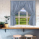 Paysage paisible avec une vallée verdoyante et des collines ondoyantes? Il est juste là devant votre fausse fenêtre. Il doit être un concurrent pour la plus belle vue à voir à travers un cadre de fenêtre. De jolis rideaux à rayures bleus et blancs semi-clairs et une fenêtre à 9 volets blanche carré complètent l'illusion avec un effet 3D merveilleux. Au-delà se trouve une scène paisible de champs verts parsemés de moutons, et il y a même un petit cottage en chaume. Cette photo a été prise par moi (zazzle.com/scenefromawindow) sur place dans le ravissant Devonshire (Angleterre).