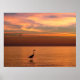 Un beau coucher de soleil sur les rives du golfe du Mexique aux tons rouge, or et orange en font une image splendide et colorée. Un grand héron bleu se dresse dans l'eau au premier plan tandis que deux mouettes de mer sont vues dans le ciel. La peinture numérique est basée sur des photographies prises à Fort Myers Beach, en Floride, par Roger Knowles.