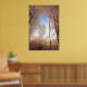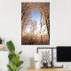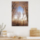Un trou dans un bois recouvert de neige montre le ciel bleu pendant un hiver froid en Belgique