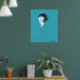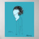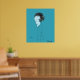 Arrière - plan est doux bleu moyen, visage est bleu pâle, cheveux noir/blanc, yeux sont verts. Ce morceau ajouterait une pop de couleur à n'importe quelle pièce ou bureau. Original et provoquant. Super idée cadeau !