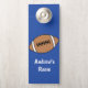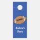 Un affichette de porte de football bleu, que vous pouvez facilement personnaliser avec leur nom. Idéal pour la chambre d'un enfant ! Le dos de ce cintre de football a un tas de balles contre un arrière - plan bleu.