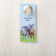 Cet affichette de porte en papier a un cheval-mère gris dans l'herbe par une clôture en bois avec son colt de bébé brun sous un ciel bleu. Customisez votre texte à l'avant et à l'arrière avec le modèle.