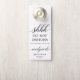 Faites savoir à vos invités qu'ils pourront se reposer après une nuit entière de fête avec les jeunes mariés avec ces affichettes de porte ! Modifiez facilement cet affichette de porte avec les informations personnelles dont vous avez besoin !